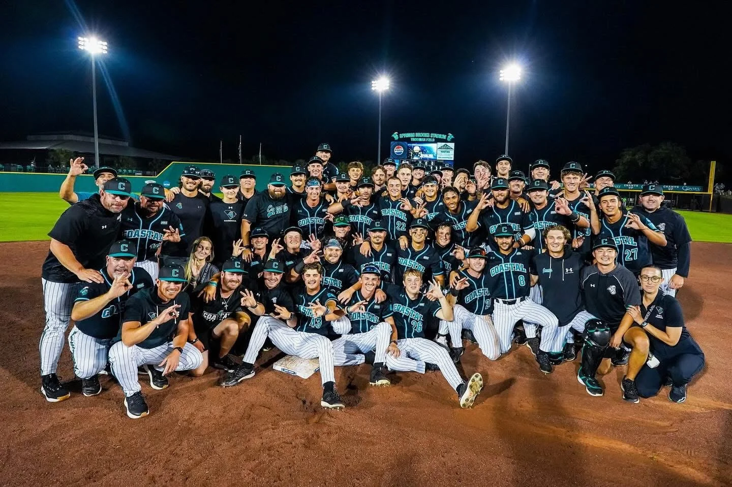 Coastal Carolina had a nation-leading and school record 56 wins, a Sun Belt Conference Championship, Sun Belt Tournament Championship, Conway Regional Championship, Auburn Super Regional Championship and a 3-0 run in Omaha to the Men's College World Series Championship Final. Over the last quarter of the season, Coastal posted a 26-game winning streak, the fourth-longest winning streak in DI in the last five years.