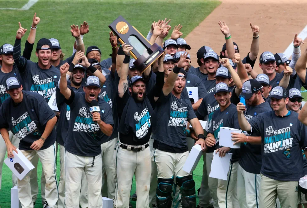 The 2016 Coastal Carolina baseball team made history with one of the most remarkable Cinderella runs in college sports. Under head coach Gary Gilmore, the Chanticleers entered the NCAA Tournament as underdogs but fought their way through a gauntlet of powerhouse programs. They captured the Conway Regional, upset LSU in the Baton Rouge Super Regional, and then shocked the nation in Omaha by winning the College World Series. Coastal defeated Arizona in a thrilling three-game championship series to secure the school’s first-ever national championship in any sport, cementing the 2016 squad as legends in program history and a symbol of perseverance, grit, and belief.