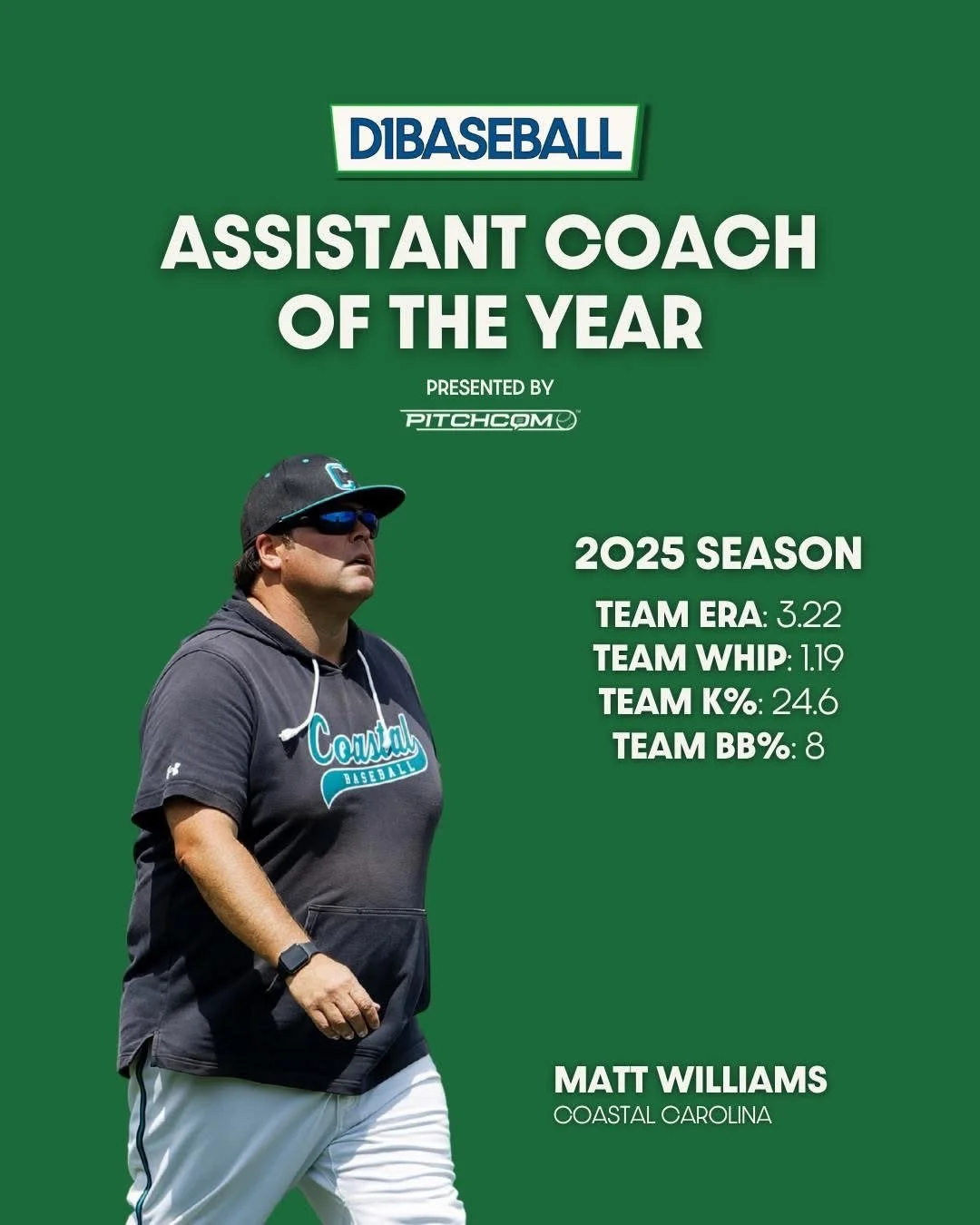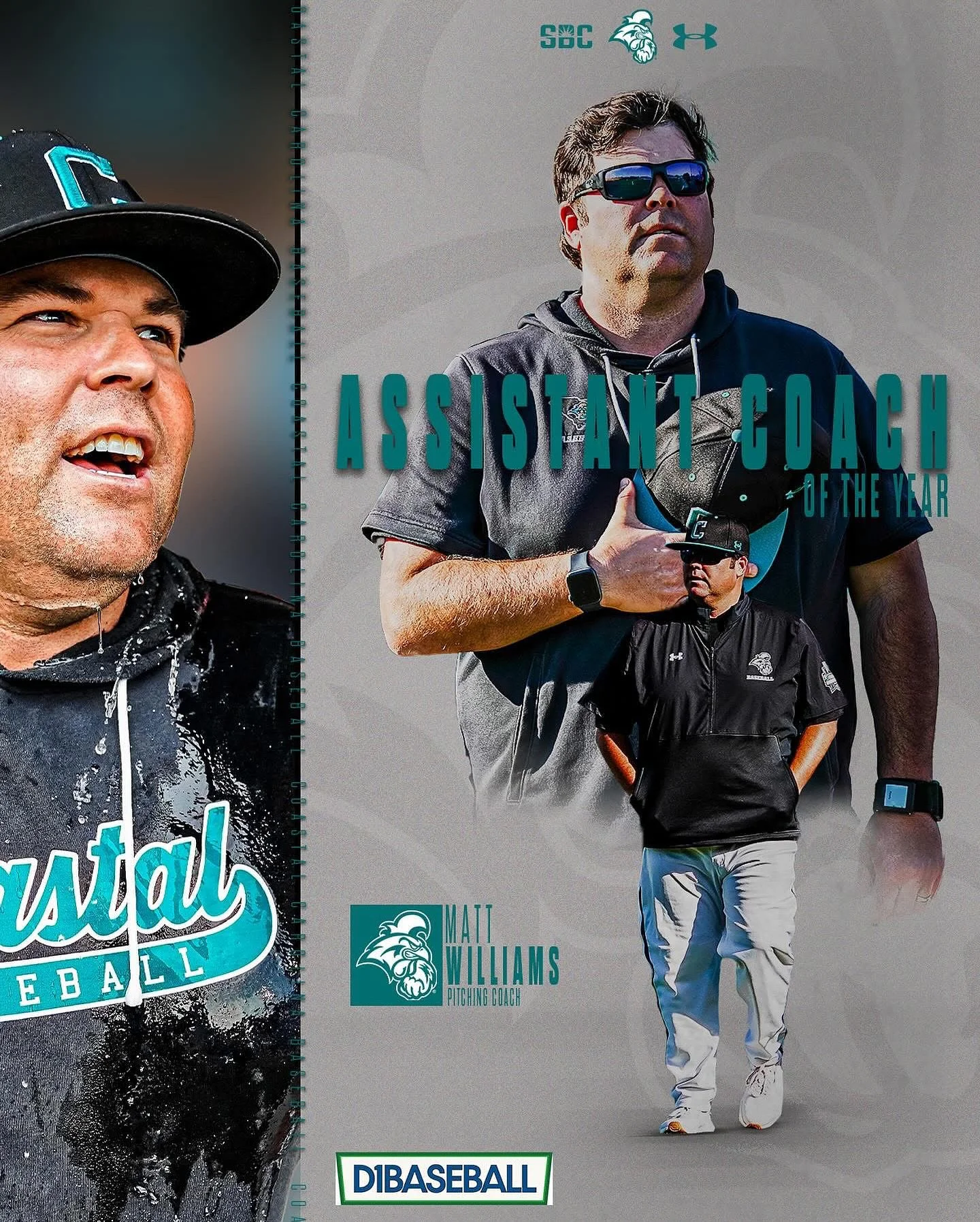 Matt Williams in his first year as the new pitching coach for the Coastal Carolina Chanticleers after spending last season at South Carolina.
